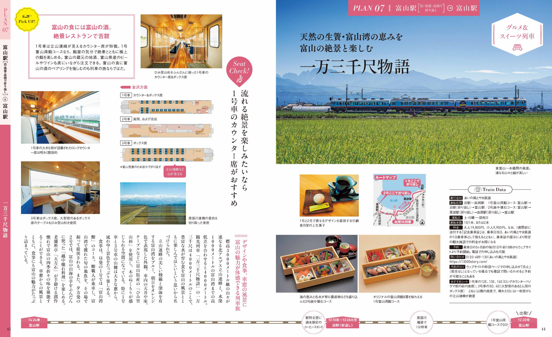 途中駅や終着駅での過ごし方を提案する「1dayモデルプラン」を掲載。地元の名物料理や観光スポット、おしゃれカフェなど、鉄道旅の楽しみが広がる充実の内容です。駅界隈の地図付きなのもうれしいポイントです。