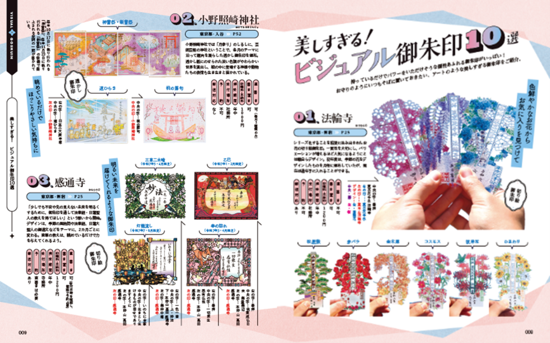 切り絵、透かし絵など、SNSでも人気の高いビジュアル御朱印を多数紹介。東京都内および都内から日帰りで行けるエリアを中心に、美しい御朱印を写真で楽しめます。