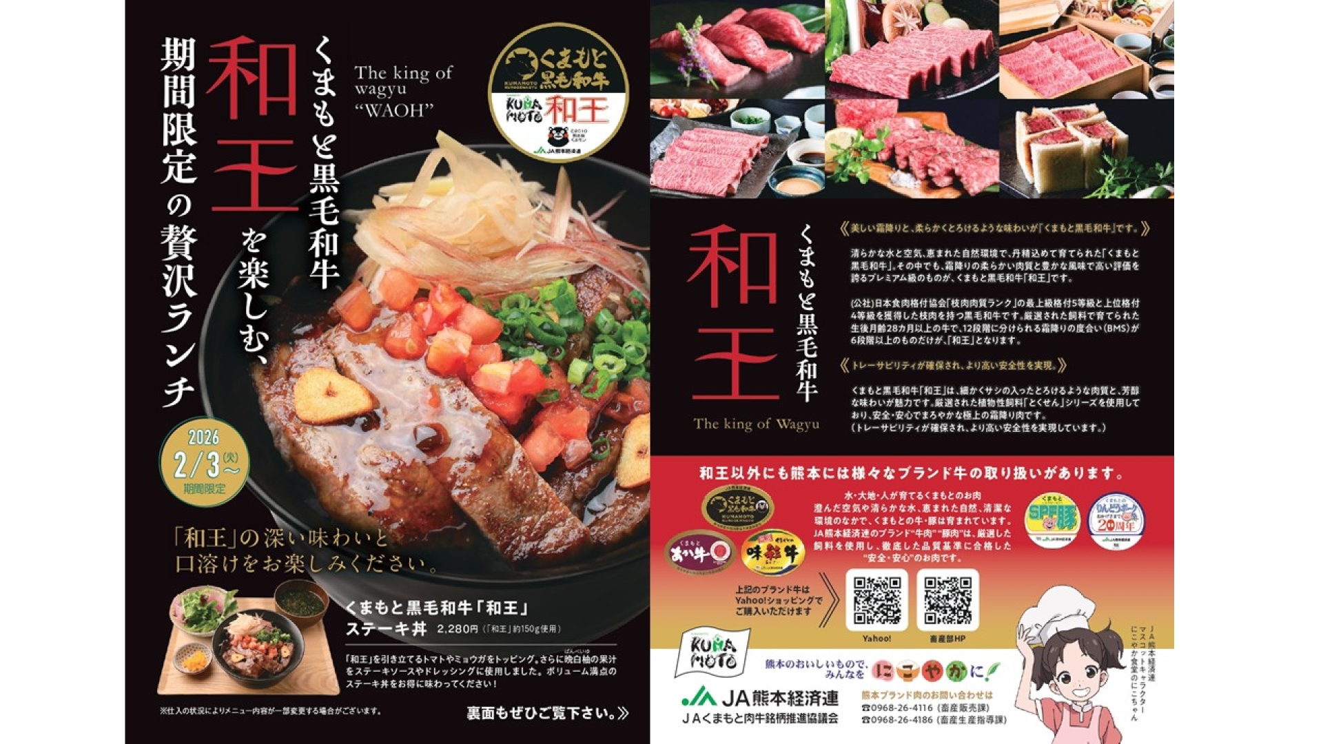 新宿駅徒歩3分『るるぶキッチン』がJA熊本経済連とコラボレーション! くまもと黒毛和牛「和王」ステーキ丼 ランチ特集フェアを開催 2026年2月3日(火)から販売スタート!