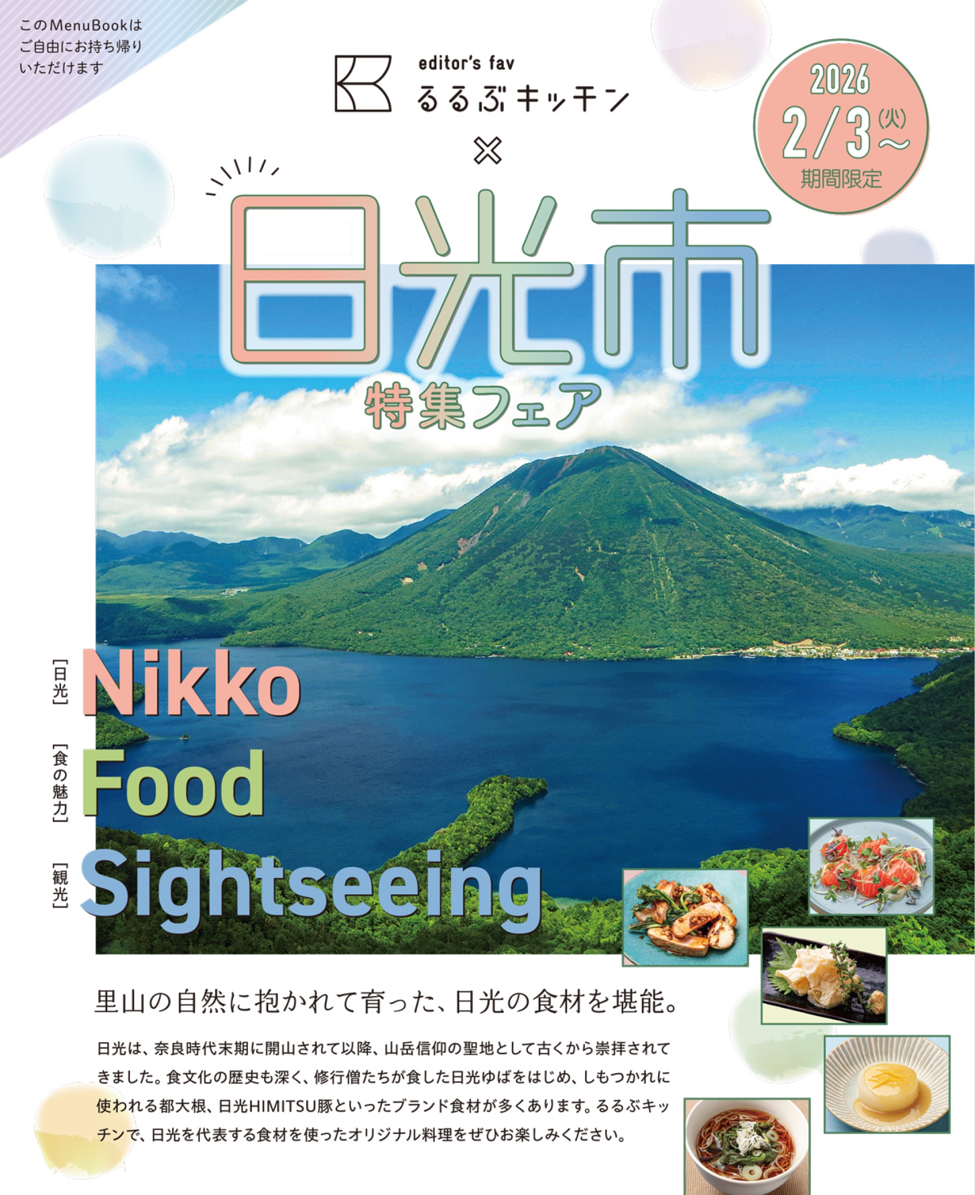 株式会社JTBパブリッシングは、直営飲食店舗『editor’s fav るるぶキッチン』(以下『るるぶキッチン』)において、2026年2月3日(火)から3月2日(月)まで、栃木県日光市と連携し、「日光市特集フェア」を開催します。