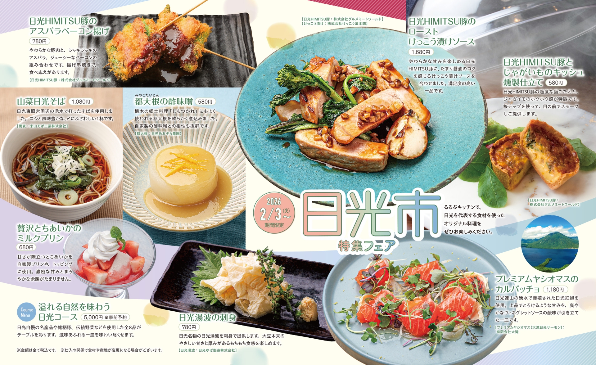 【日光市特集フェア 提供メニュー】 ※価格は税込です。