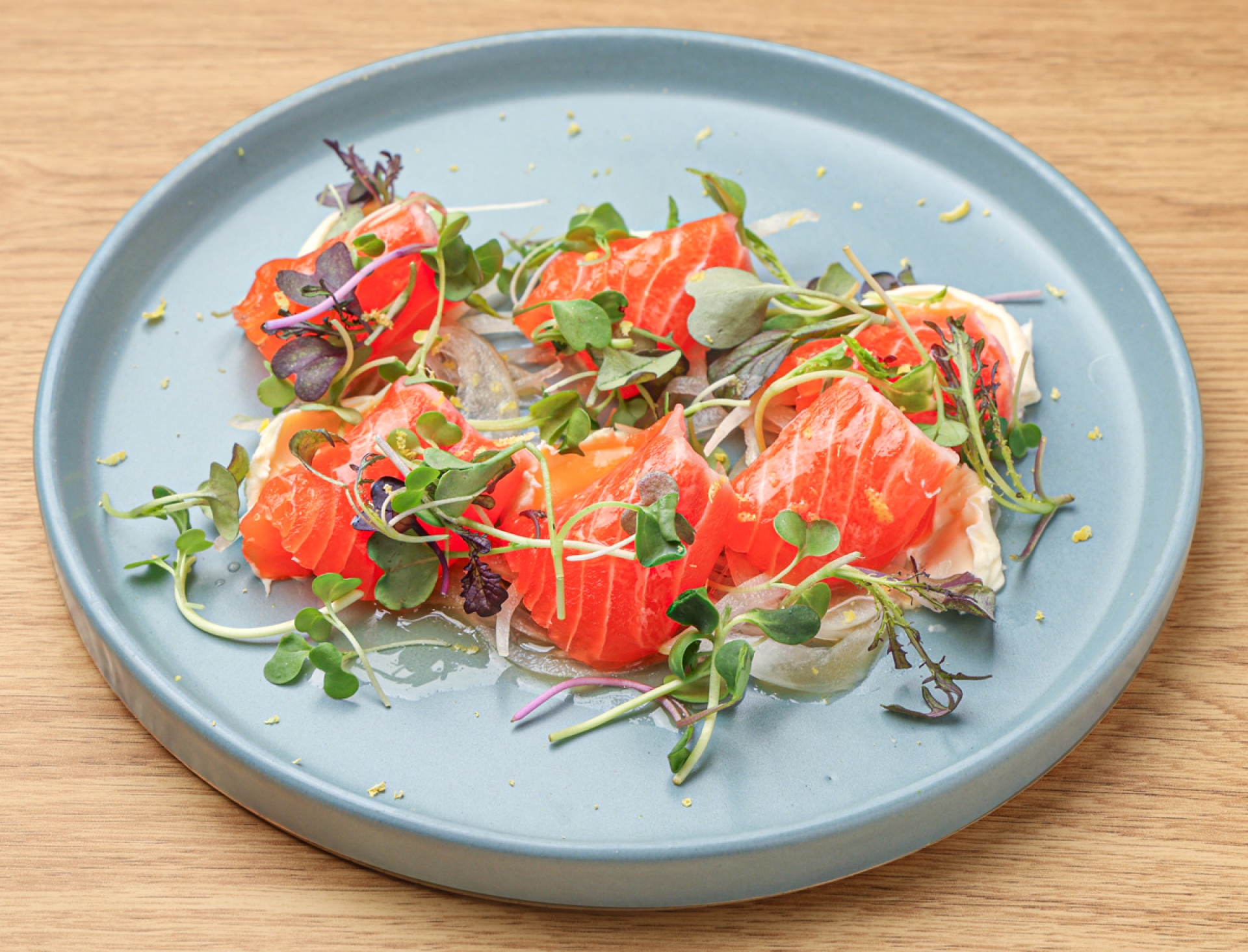 日光連山の湧水で養殖された日光紅鱒を使用しました。上品でとろけるような甘みを、爽やかなヴィネグレットソースの酸味が引き立てた一皿です。